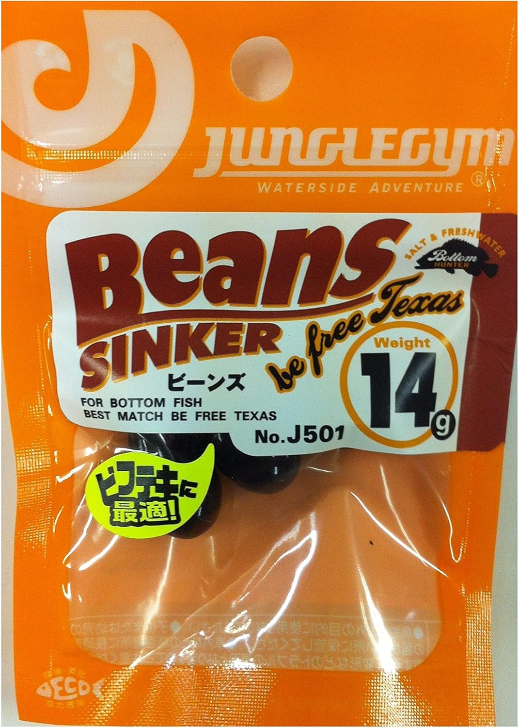 ラインの影響を受けにくい形状でフォール・カバー貫通性に優れ、スリ抜けはテキサスリグの様にシンカーから抜ける事で、高いスナッグレス性を見せるJUNGLEGYMのビーンズシンカー。 この性能に惹かれ、JUNGLEGYMにコラボレーションをオファー。 ハードに使用しても塗装が剥がれにくく、魚からの違和感を消去する特殊マットブラック塗装を採用し、性能に磨きをかけた。