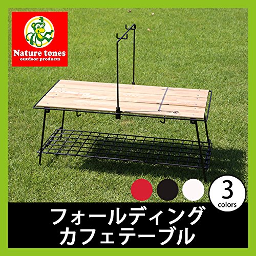 キャンプでおしゃれに「魅せる収納」を実現できるネイチャートーンズ。 見た目もオシャレなのですが、ネイチャートーンズのアウトドアギアは収納力にも優れています。サイドにシェラカップをかけることが出来て、テーブル下ラック、スタンドの間にもモノやお皿を置けるからテーブルの上がスッキリします。天板の下には網棚が付いていますので、ちょっとしたアウトドア小物がおけるようになっています。下のスペースは洗った物を置いて乾かしたり、大きいお皿や鍋を置いたり使い方は自由です! コンパクトに折りたためるアウトドアカフェテーブル。メタル部分は樹脂コーティングを施していますのでサビに強くなっています。