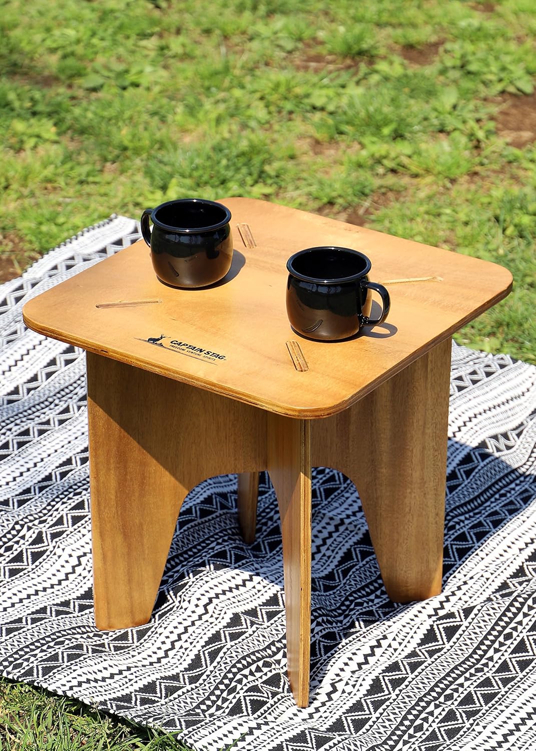 組み立て式のローテーブル。天然目の美しさが、キャンプをおしゃれに演出します。便利な収納袋付き。部屋のインテリアにもぴったりなデザインなので、サイドテーブルとしても便利で、おしゃれなアイテムです。