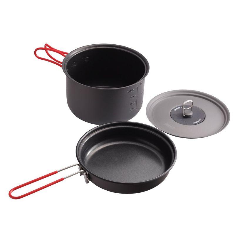 赤いハンドルが目印のかわいいクッカー。基本的にはソロ用ですが、900mlまでお湯を入れられるので、2人分のカップラーメンは余裕で作れるサイズです。メモリが付いているので、キャンプ料理に慣れていない初心者にも優しいコッヘル。フライパンに蓋もついているので、様々な料理に挑戦できる万能クッカーセットです。
